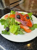 Romaine lettuce, tomatoes, fresh mozzarella, black olives, anchovies, cucumber, onion & roasted peppers.